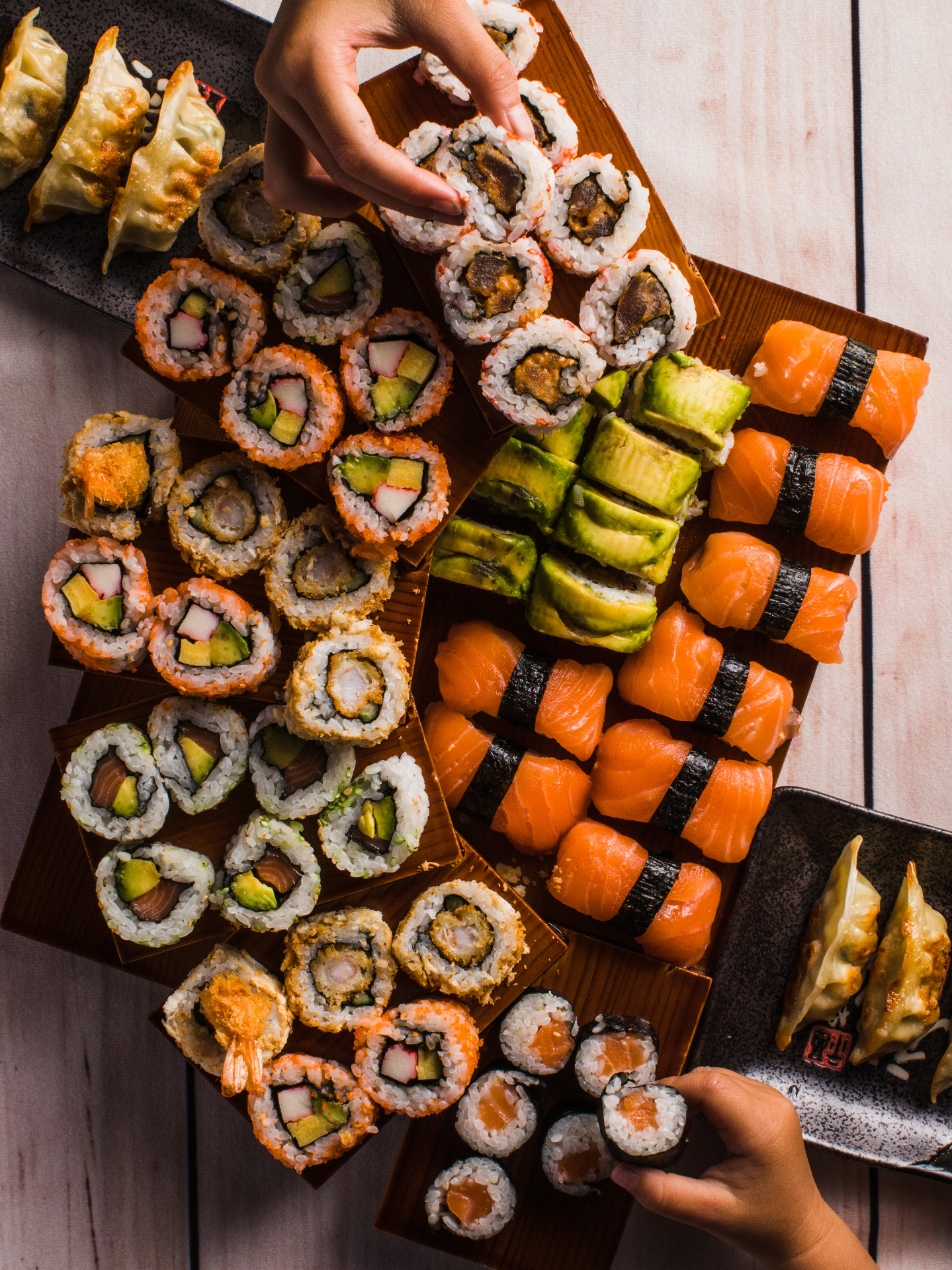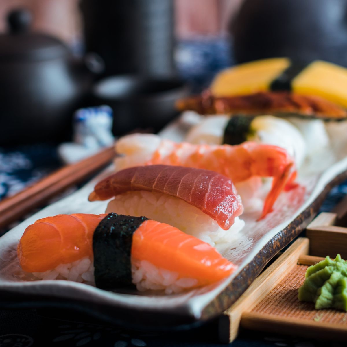 Zalm, Tonijn, Scampi, Zeebaars, Inari en Tamago